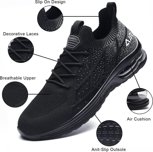 Women'S Air Running Shoes Breathable Athletic Tennis Shoes Sport Walking Sneakers Black 10