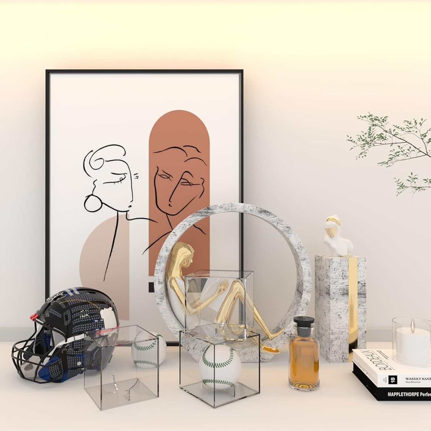 Baseball Display Case 6 Pack, UV Protected Acrylic Square Baseball Holder, Clear Cube Autograph Memorabilia Ball Display Cases, Official Size Baseball Display Box