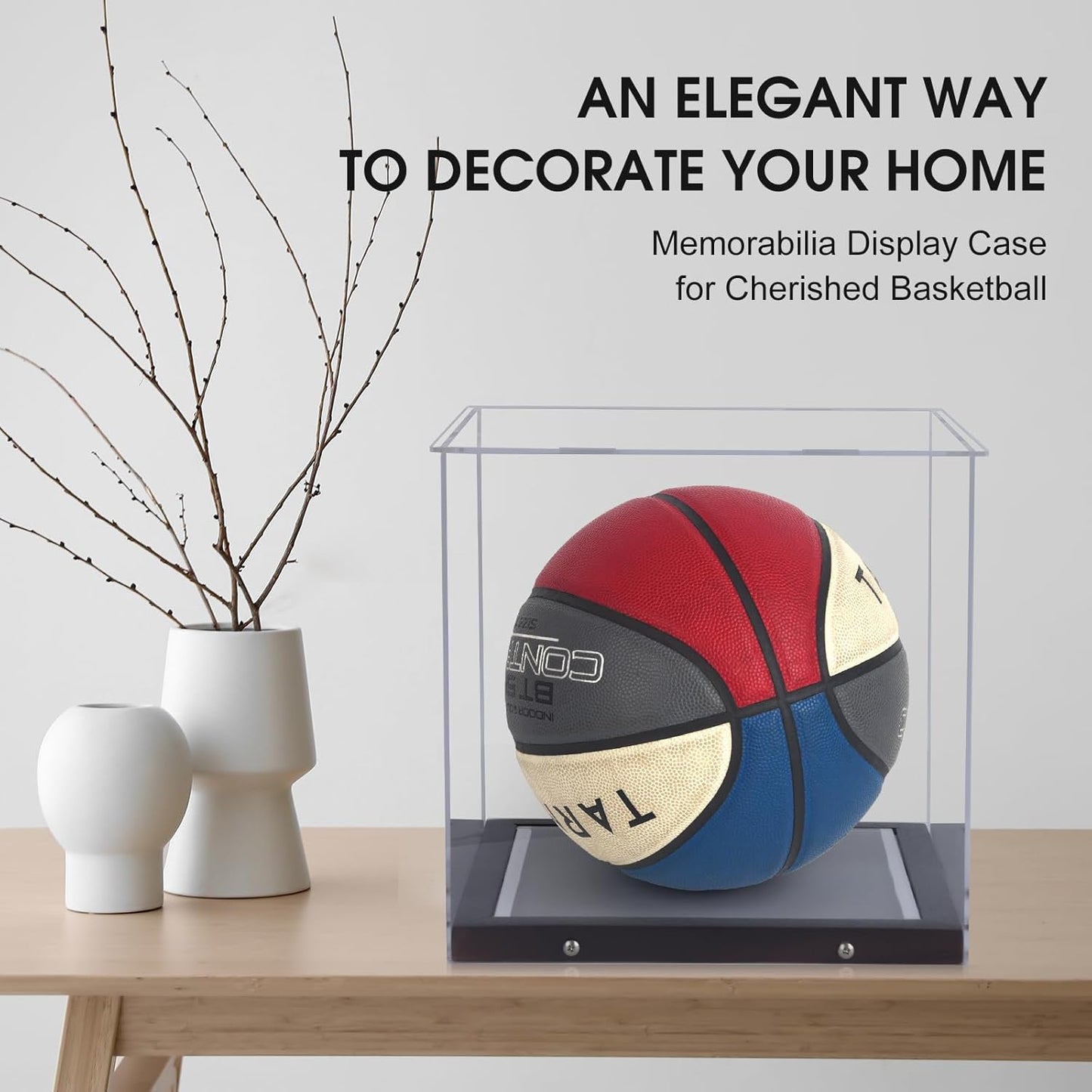 Basketball Display Case with LED Light Clear Acrylic Basketball Display Box, Display Holder for Autographed Basketball, UV Protection Dust Proof Memorabilia Display Case